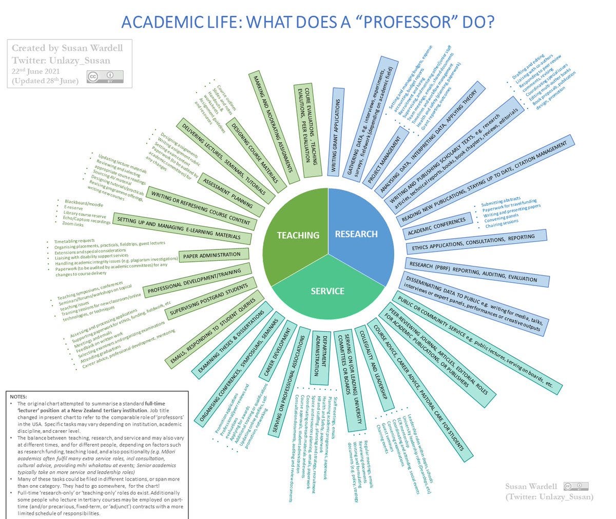 I show her this diagram illustrating the different roles and tasks of academic labour. Her response was one of astonishment: